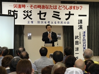 また、昨年の3.11東日本大震災以降、今後の災害対策について行政でも様々に見直しが図られていますが、道民の皆様の不安を少しでも早く解消できるようにと、「防災を考える市民の会」を発足し、勇払地域を皮切りに沿岸地域で「防災セミナー」を開催しました。